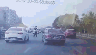 二、车辆短暂停顿后即突然加速,将交警撞倒在地然后恶意碾压。