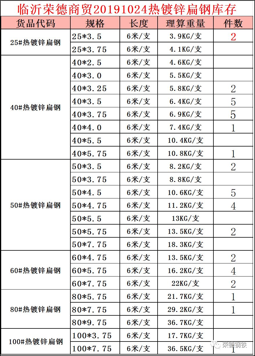临沂荣德20191024镀锌扁钢库存