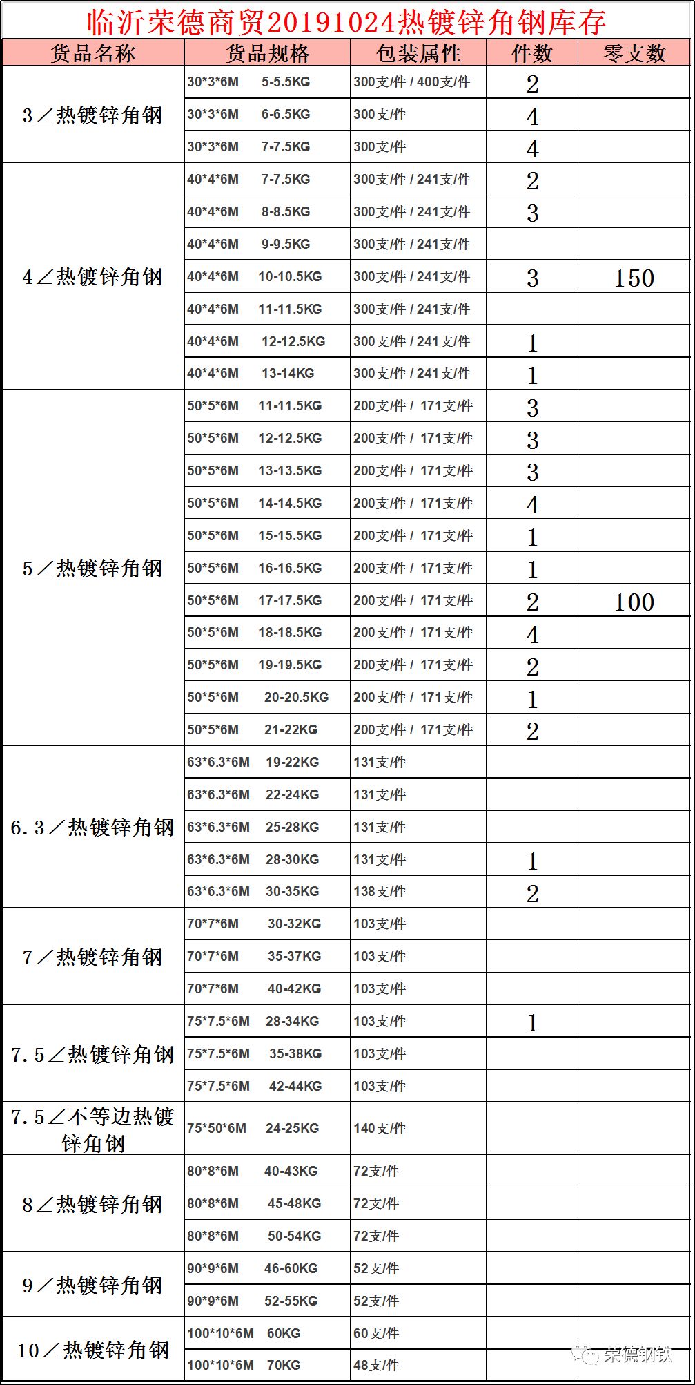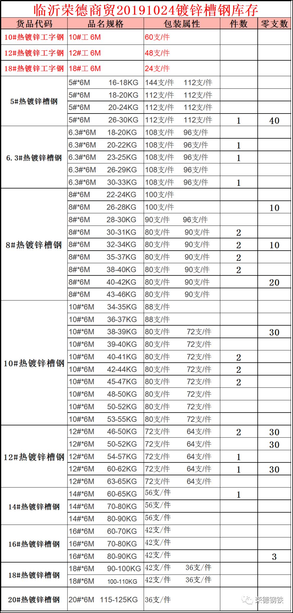 临沂荣德20191024镀锌角钢槽钢库存