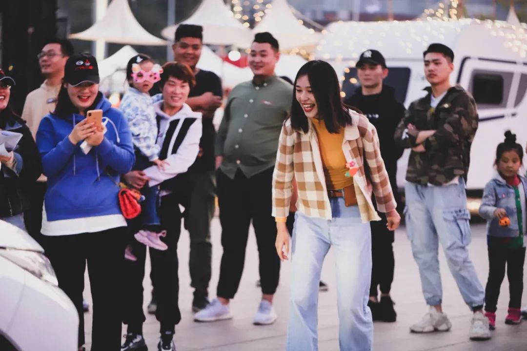 孩子跟着扭屁股,观众自发摆着节奏