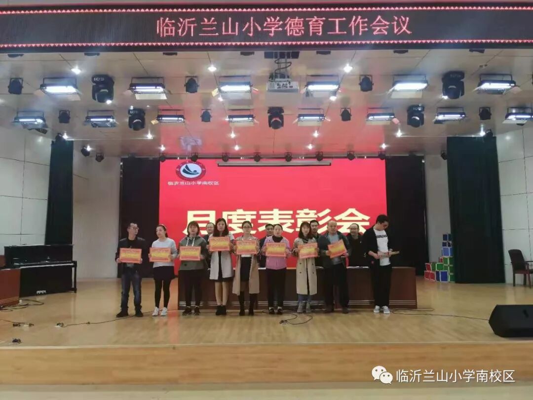 本次活动由葛祥超副校长主持。刘夫涛主任宣读了表彰决定。被表彰的老师各个激动不已,更加信心满怀迎接新的挑战。刘永田主任代表校委会,向老师们提出期望,希望他们继续努力进取、踏实前行,带动整个学校不断奋进。同时就学校的教学、政教、安全等方面向老师们提出了具体要求。最后,孙树祥校长作了重要讲话,他分析了兰山区抽测的成绩,我校在全区的名次十分靠前;回顾了开学以来学校各个方面取得成绩和进步,他还就学校前景给老师们进行指引,为大家带来了鼓励,孙校长同时要求大家不忘初心,教书育人。孙树祥校长的讲话获得了老师们热烈的掌声。