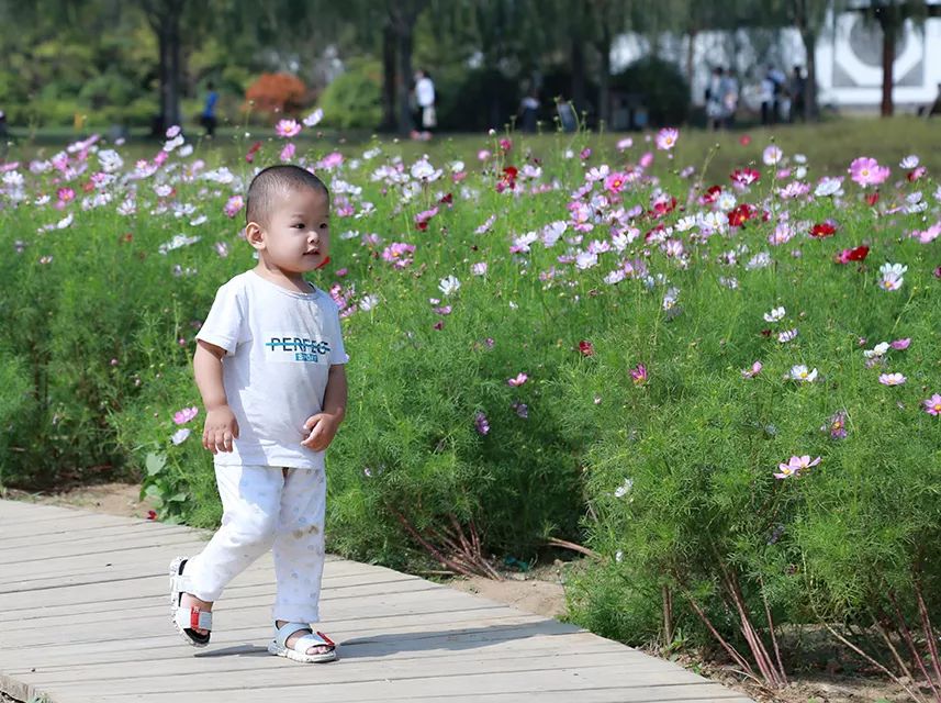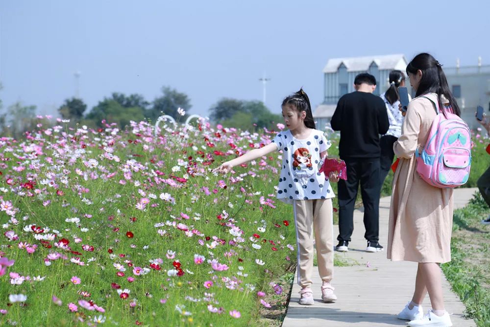 花海中,阡陌倩影。有不少游客扶老携幼,或与三两知己拍照打卡,在这些色彩间流连忘返,画面十分美好。