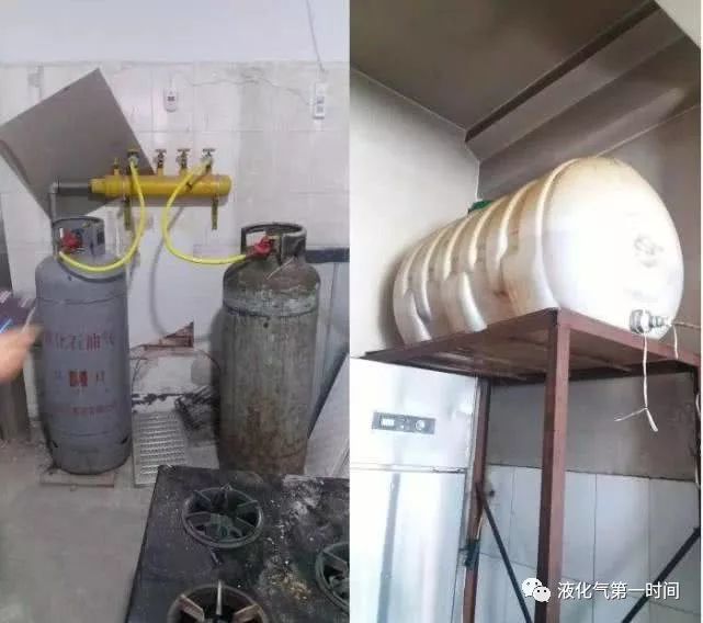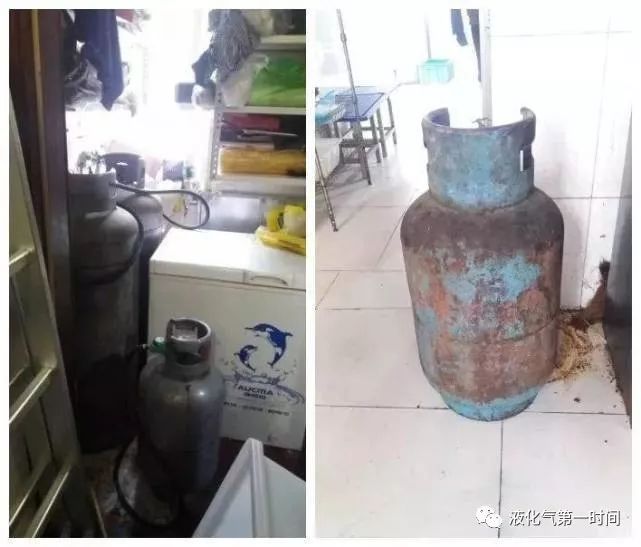 (三)餐饮店液化气瓶隐患多。存在个别液化气报废气瓶、少量超期未检气瓶和安检标签标识不清气瓶;气瓶放置空间狭窄、气瓶周围堆放大量杂物、通风不良、气瓶占用安全通道,气瓶放置在木箱内;气瓶使用非燃气专用胶管、胶管老化严重、胶管过长、胶管接头处采用铁丝绑扎、使用自制三通;气瓶使用地点未配备消防设施,无安全警示标志;气瓶组室内电器开关不防爆、无防爆天窗、无紧急切断装置、未安装防火门;使用生物油作燃料。