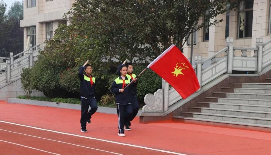 本次建队仪式在嘹亮的少先队出旗曲中拉开帷幕。之后,全体少先队员高声齐唱《中国少年先锋队队歌》。