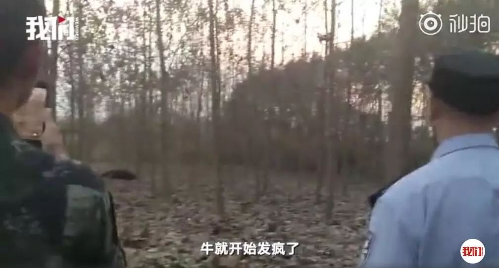 利用这个情况,民警开始尝试“调牛离山”,让伍先生趁机爬下来。然而爬到一半又被牛发现了,牛往回走了两步,吓得伍先生又上了树。