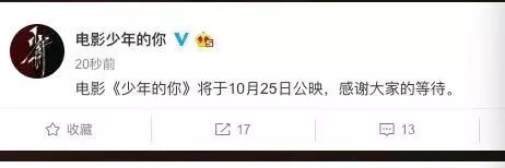 【影讯】突然定档!"少年的你"宣布10.25公映