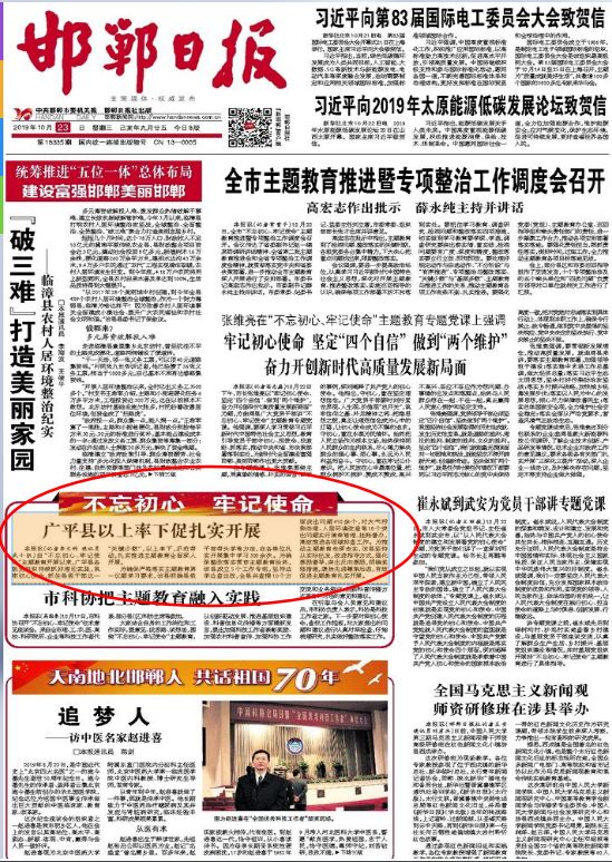 河北新闻网讯(武小凯、李宁、赵辉)自“不忘初心、牢记使命”主题教育开展以来,广平县各级党组织持续抓好理论武装,筑牢初心使命,抓住县级干部这一“关键少数”,以上率下,示范带动,扎实推进主题教育全面深入开展。