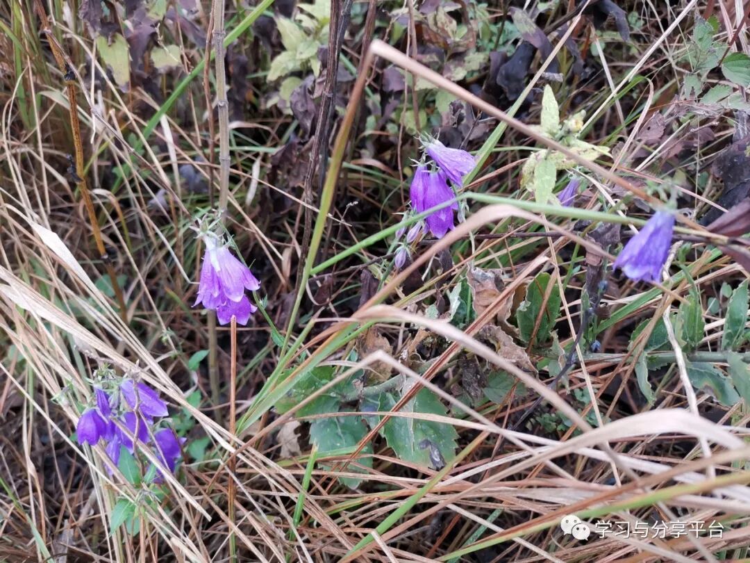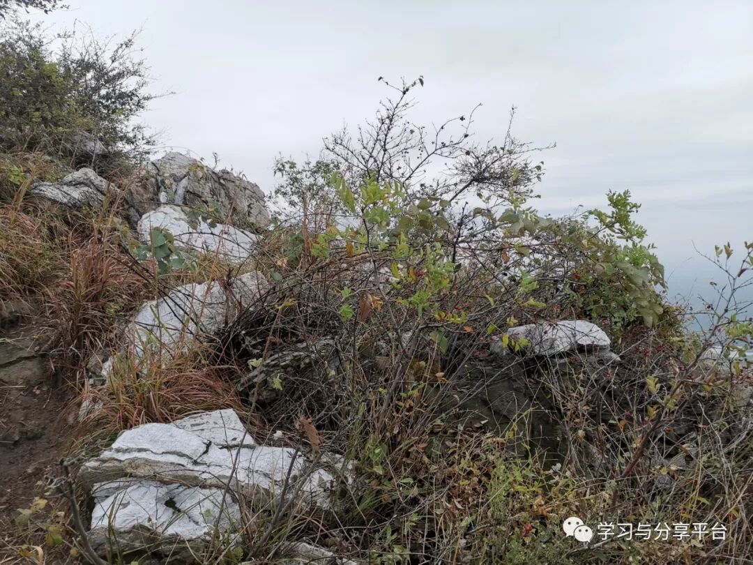 扁山还是一座充满生机的美丽之山。我和四位驴友迂回攀援在山石之间,身边的石头、灌木、野花、野草与远近的景物相映衬,构成一幅幅完美的画面。我们有时停下来驻足欣赏,有时候忍不住举起相机拍照记录。这里几乎没有什么高大的乔木,只有一两棵树各自茕茕独立,远远地相互眺望着,秋风萧瑟,稀疏的树叶发出簌簌之声,仿佛在相互低语倾诉,又似乎在彼此鼓励,要勇敢面对秋风的肆虐;满山的石头与灌木和杂草伴生,晚秋的野草大多枯黄,缺少生机,但偶尔在枯草中可见的野花则更加令人惊艳——紫色的风铃草还在倔强地盛开着,为肃杀的晚秋涂上最后一抹亮色;石缝间,掉光了叶子的灌木上,红红的野果果在秋风中坚强的拽住枝头,晃着脑袋,似乎在向风刀霜剑顽强地说不……