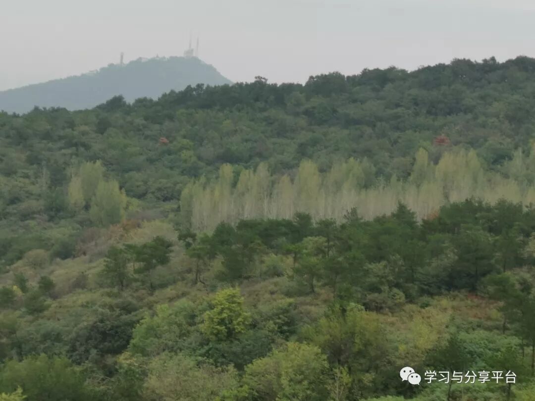继续由西南向西眺望,曹家大山相邻之地,水波粼粼、湖泊点点的地方,永丰水库、渭水水库环抱着笔者的家乡张家湾。视线向北游走,就是尹集乡的中华紫薇园景区、白云人家和富春山居,崭新的别墅建筑群与自然山水相映成趣,好一幅天然的深秋水墨画。