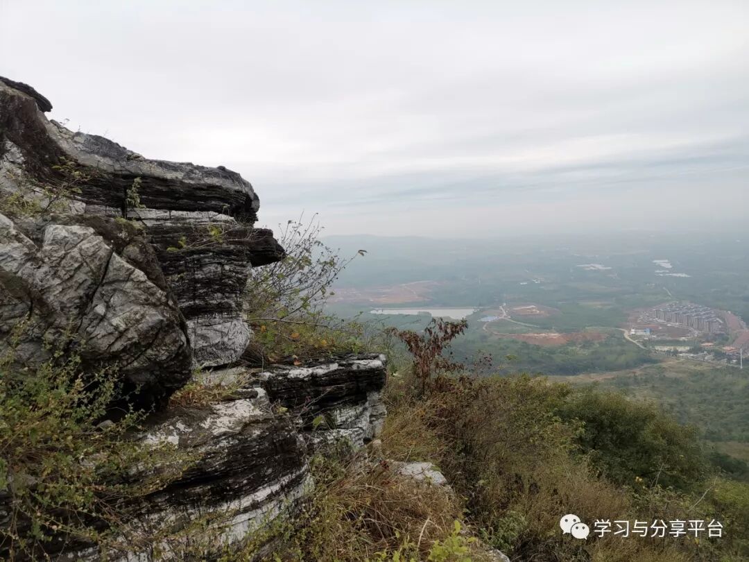 此时,2019年九月九日重阳节的上午10时33分,我也站在襄阳最高峰,南望,首先映入眼帘的就是扁山之次峰——南峰,海拔424.5米,主次两峰之间相距千米左右,山梁海拔大都在400米以上,危石耸立,岩壁陡峭。群峰连绵,山峦起伏,蜿蜒向南三十里,就是著名的曹家大山,又名百丈岩,此乃岘山之尾也,与岘首山遥遥相望。