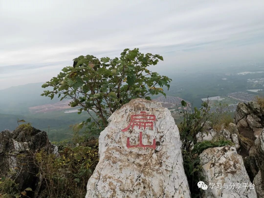 我正看的带劲呢,忽听到有人叫我名字。一看,原来是熟悉的驴友青苹果!在九月九重阳节登高日,在襄阳最高山的最高顶邂逅驴友,是一种奇遇,但也绝非偶然,相同的志趣使然也。我们酷爱户外运动,喜欢旅游,曾在2018年清明三天小长假,参加襄阳自游人群组织的“江西婺源→三清山→龟峰山三日游活动”,我曾在一篇游记中做了描述。