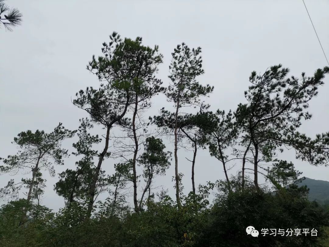 今年的重阳节恰逢与寒露相连,山谷间黄花红叶妆点着秋色,正是一年之中色彩最丰富的时节。路边的主色调仍然是深绿色,给人以“不是春光胜似春光”之感。特别是北边的山坳里的一片马尾松,青针绿枝,一派苍翠,满眼生机;和马尾松形成鲜明对比的是另外一种松树,显得苍凉沉郁,古朴的虬枝完全可以入画,是山水画派画家们笔下的最爱……山中景物,还夹杂以赤橙黄绿青蓝紫等多种色彩,满眼的斑驳陆离,又给人以浓浓的秋意。