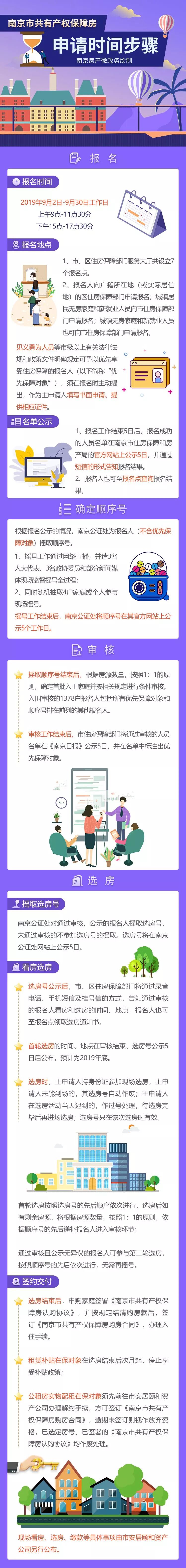 以本次申请为例,南京市住房保障和房产局官网会公布共有产权保障房申请时间,在有效期内凡自我评估符合上述条件的新南京人都可到南京市住房保障和房产局进行现场报名。