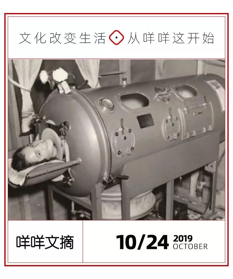 在1950年代,美国爆发小儿麻痹症,患者肌肉逐渐萎缩,四肢可能出现畸形或是呼吸困难,导致终生残疾,甚至死亡。 在当时的医疗条件下,这种病根本无法治愈,直到铁肺(Iron Lung)的出现,来辅助那些不能自主呼吸的人得以活下去。