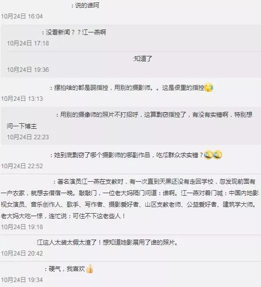 这个爆料曝出后,也是引起了很多人的热议。大家认为说江一燕没有代表作这也算不了什么,说江一燕支教是“摆拍”也只能说其喜欢作秀罢了,但用其他摄影师的作品这就涉嫌“剽窃”了。