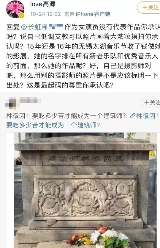 且不说江一燕获得建筑奖是真是假,但在摄影届,江一燕的资历是绝对比不上高源的。高源除了窦唯前妻的身份,还是内地资深女摄影师,曾用镜头为中国流行音乐记录下了很多经典的作品。而江一燕跨行做摄影师,在这一点上确实比不上高源。高源还揭露了江一燕曾在某一年的无戏太湖音乐节上花钱请主办方为自己办影展。