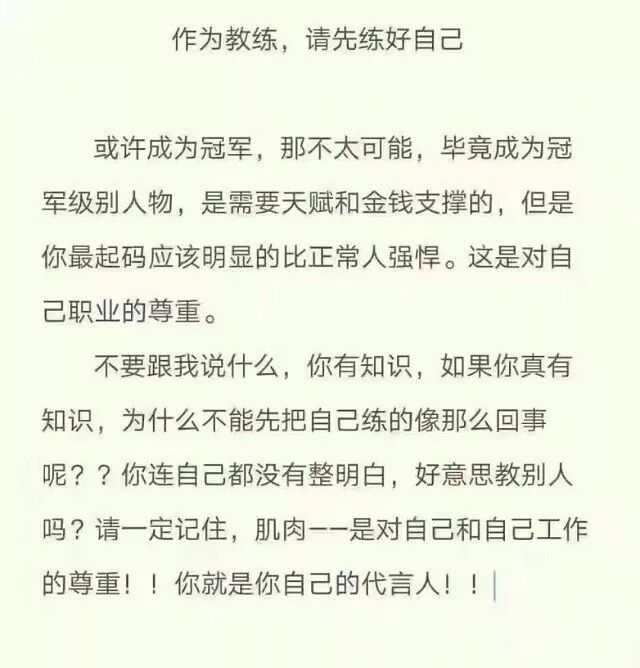 私教本是一个不错的职业,在这个行业踏踏实实耕耘,真真切切让会员得到改变,这才是正道。