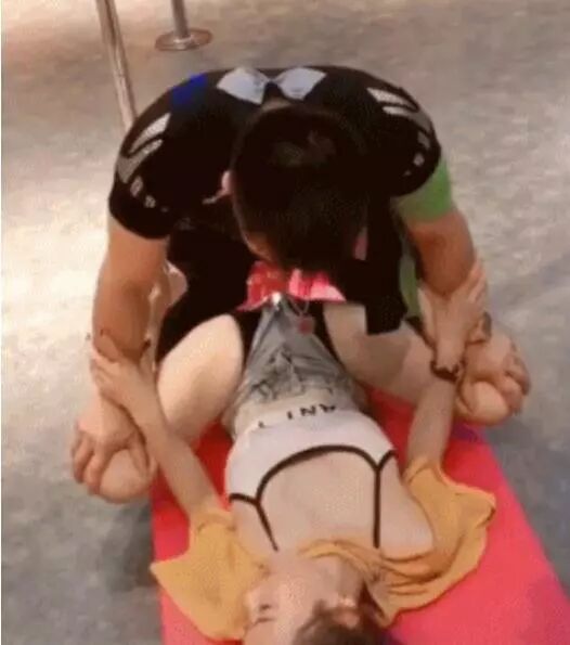 而当女学员练习快到力竭时,教练也是主动用双手给予用力,帮助她完成动作。
