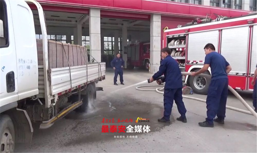 10月24日,一辆小货车连续下坡过程中后轮处冒烟,司机情急之下将车开到了消防队里,消防立即用水枪打水处置。
