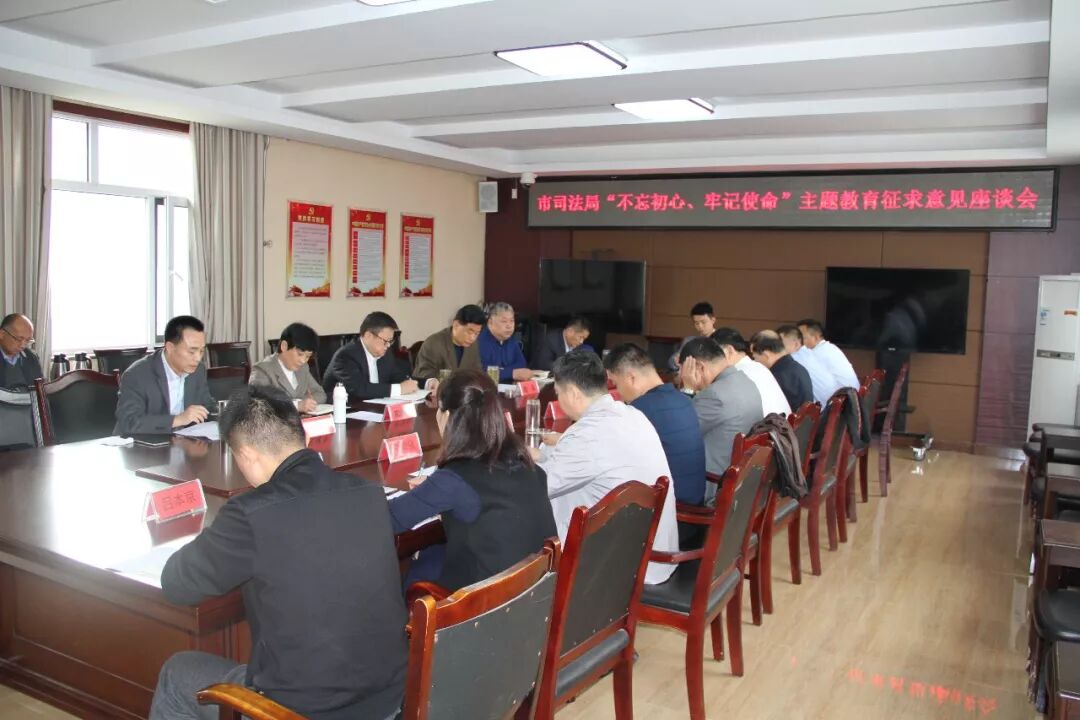为扎实推进主题教育深入开展,进一步改进工作作风,提升工作效能,10月24日,市司法局组织召开“不忘初心、牢记使命”主题教育征求意见座谈会。会议由局党组书记、局长常书彦主持,局全体县级干部,仲裁、法律援助、公证、律师、司法鉴定等法律服务人员和司法所长代表共20余人参加会议。