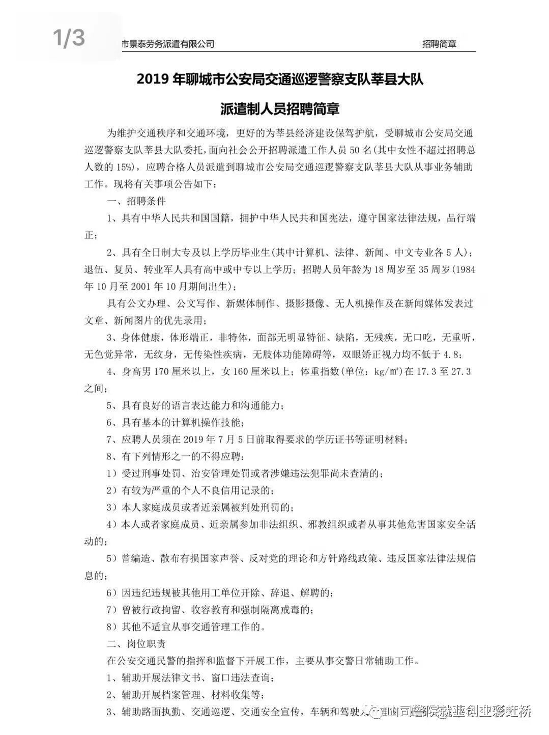 【招聘】聊城市莘县交警大队警务辅助人员招聘公告