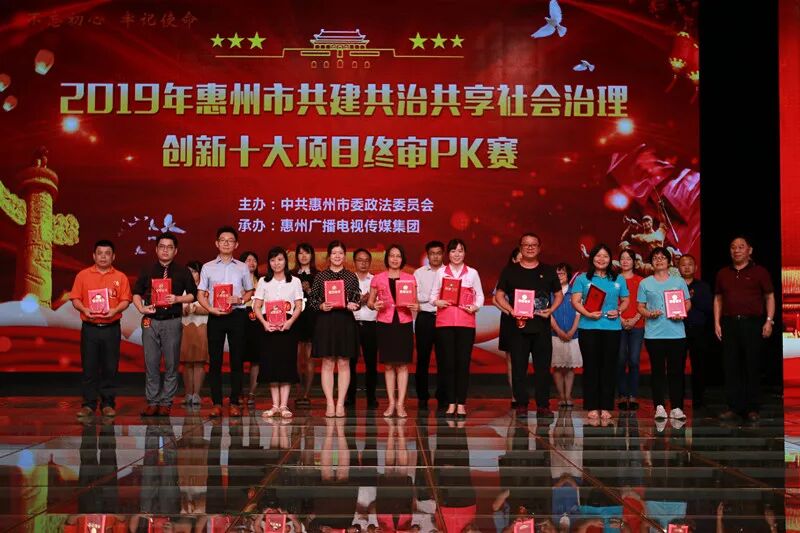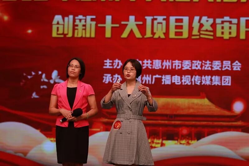 近日,由中共惠州市委政法委员会、惠州市广播电视传媒集团承办的“不忘初心 牢记使命”2019年惠州市共建共治共享社会治理创新十大项目终审PK赛在惠州广播电视台隆重举行。全市96个项目中,惠城区妇联《巾帼维权护万家》经过初审、复审的层层筛选和考核,成功入围终审PK赛。