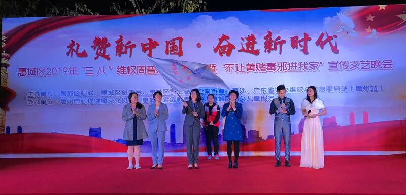在今年3月8日惠城区妇联主办的“礼赞新中国·奋进新时代”文艺晚会,志愿队接受授旗仪式,红紫荆巾帼法律服务志愿队正式成立。