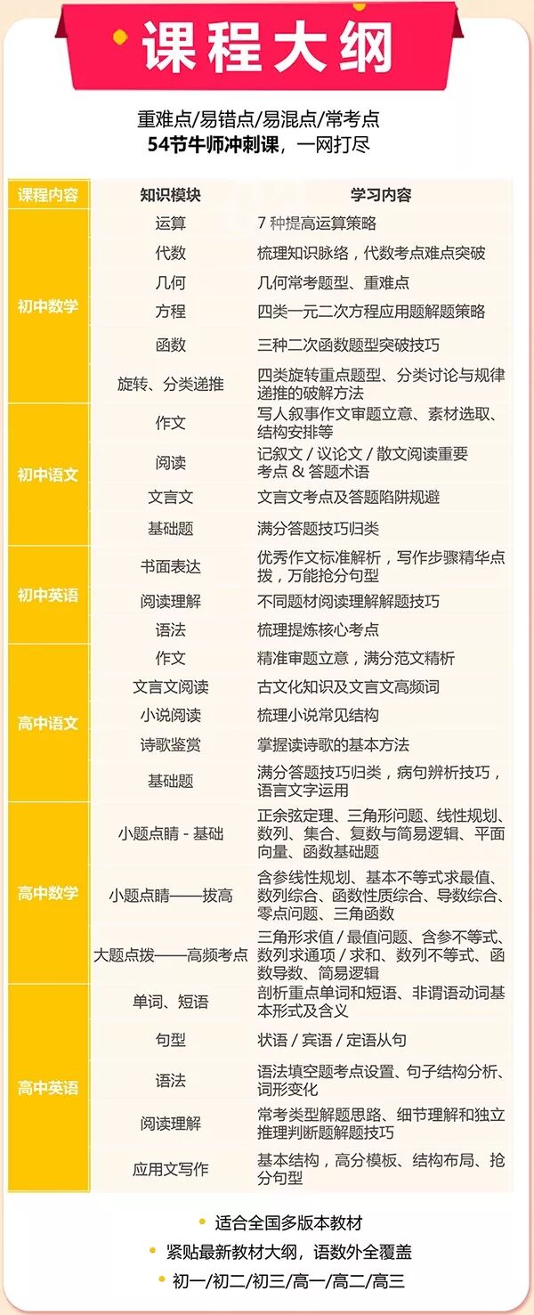 学大教育《期中考·牛师冲刺课》【覆盖初一至高三、语数英3科】