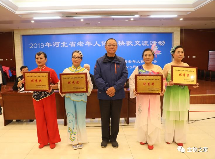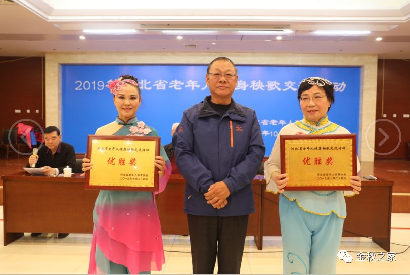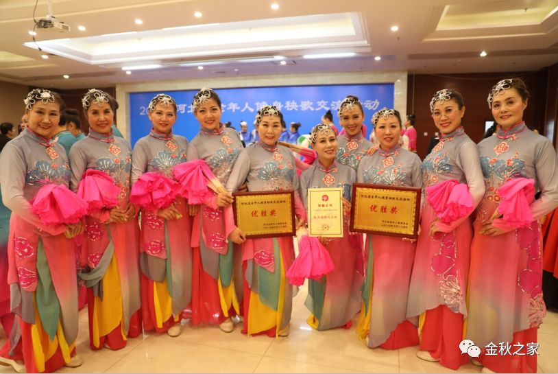 河间市老年体协秧歌代表队表演的国家规定第七套健身秧歌和自选套路均获优胜奖。