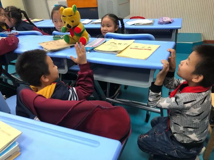 课程开始,宋老师先带领孩子们做韵律小游戏,既调动了孩子们的积极性,又在活动中复习了之前的知识。