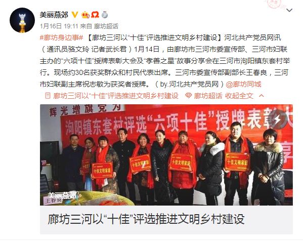 他一直关注社会公益事业,通过“美丽燕郊”及时发布寻人启事、公益活动、生活出行、安全提示信息,以及扫黑除恶、脱贫攻坚、打传禁毒、交通限制、交通管制、户籍业务、违法处理程序等关系市政民生的工作信息,方便了群众生活,营造了和谐的网络环境。