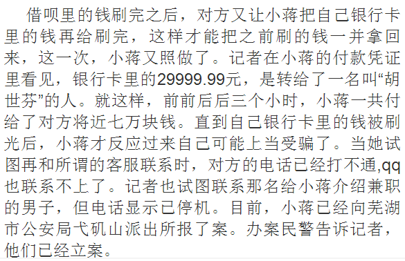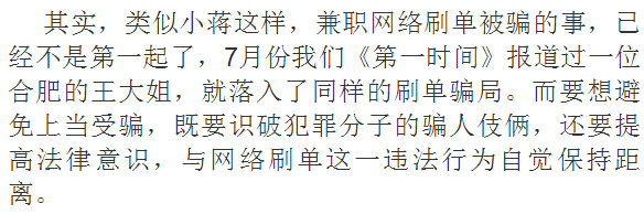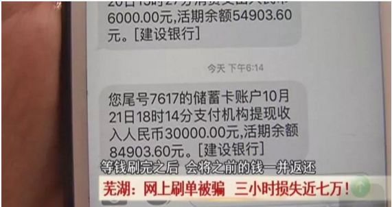 【头条速递】芜湖一女子网上刷单被骗,三小时损失近七万!