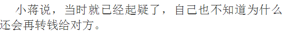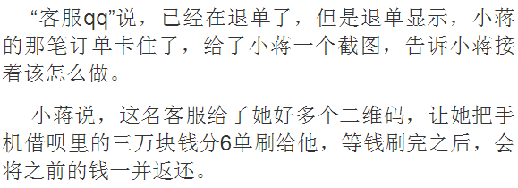 小蒋是一名普通的上班族,她想利用业余时间找份兼职,于是,在网上投了一份兼职简历。10月20号,小蒋接到了一名陌生男子的电话,他告诉小蒋,在家刷单就能轻松挣钱。这名陌生男子推荐小蒋兼职给淘宝刷单、刷好评,可以每一单给小蒋35块钱的返额。 只要手机操作一单,就能获得35块钱的返现。小蒋说她一糊涂,就按照对方的指引进行了刷单操作。