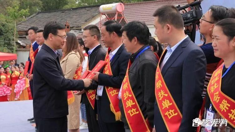 市县领导对全市“脱贫示范户”“带贫示范户”“最美选派帮扶干部”“最优帮扶责任人”“最佳社会帮扶单位”及无为县优秀扶贫代表近一百余人及企业进行表彰并颁发证书。