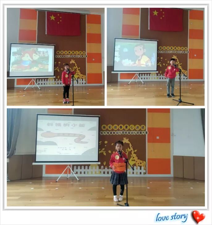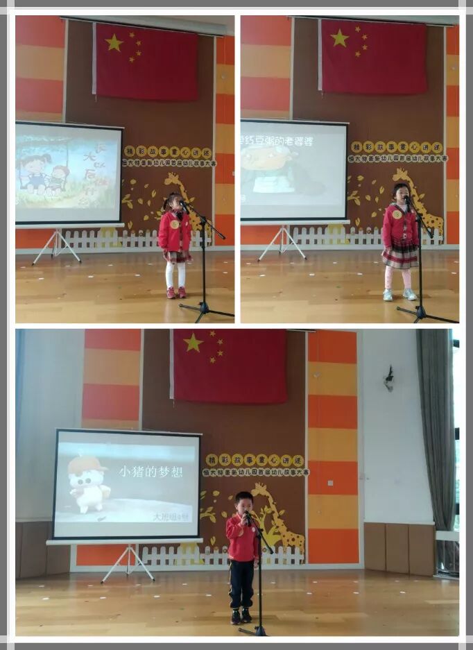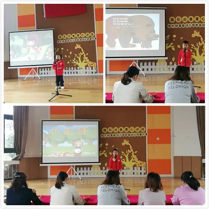别看我们小,我们讲故事的时候可一点都不怯场哦。我们特别激动,因为这是我们进入幼儿园以来第一次一个人上台表演,但是我们不害怕。用我们稚嫩的声音说出的故事引来大家阵阵掌声!