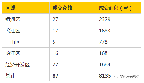 2019年10月25日芜湖市区二手房共成交87套,成交面积为8135㎡。