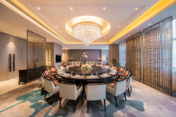 中餐厅雅致隽永、艺术品和灯具,打造出城中最高贵的就餐环境。
