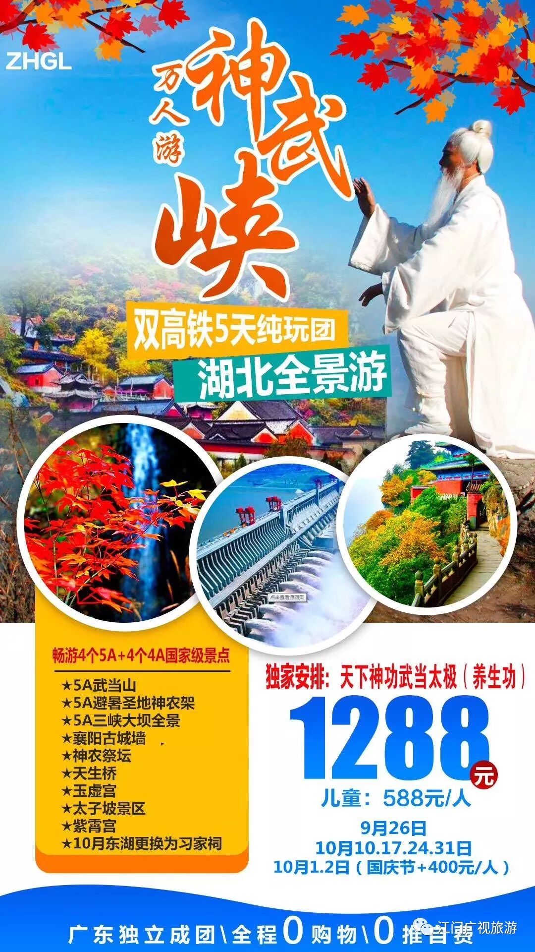 内容介绍:神武峡精华景点一网打尽:5A武当山+5 A神农架+5A三峡大坝+神农坛+天生三桥+太子坡景区+学习养生功+襄阳古城墙+(10月东湖景区更换为习家祠)+司机,油费导游服务费门票构成