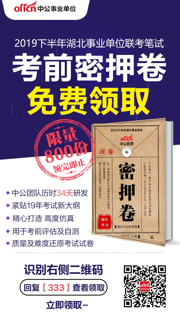 考生须知:①本密押卷为湖北中公研究院名师团队历时34天研发而出,依循历年试题出题规律与知识分布结合19年新大纲编写出的一套试题,质量与历年试题相当,用于考前评估与考前自测。