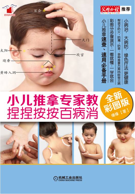 答:缘缘老师所著的《小儿:推拿专家教,捏捏按按百病消》由机械工 业出版社出版,全国各大书店,当当网,亚马逊等有售!