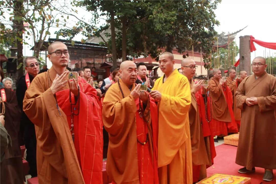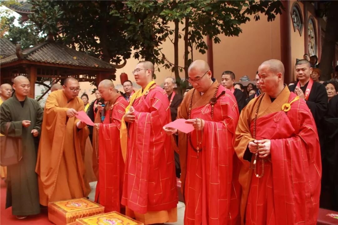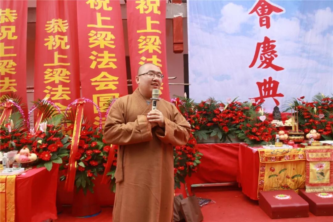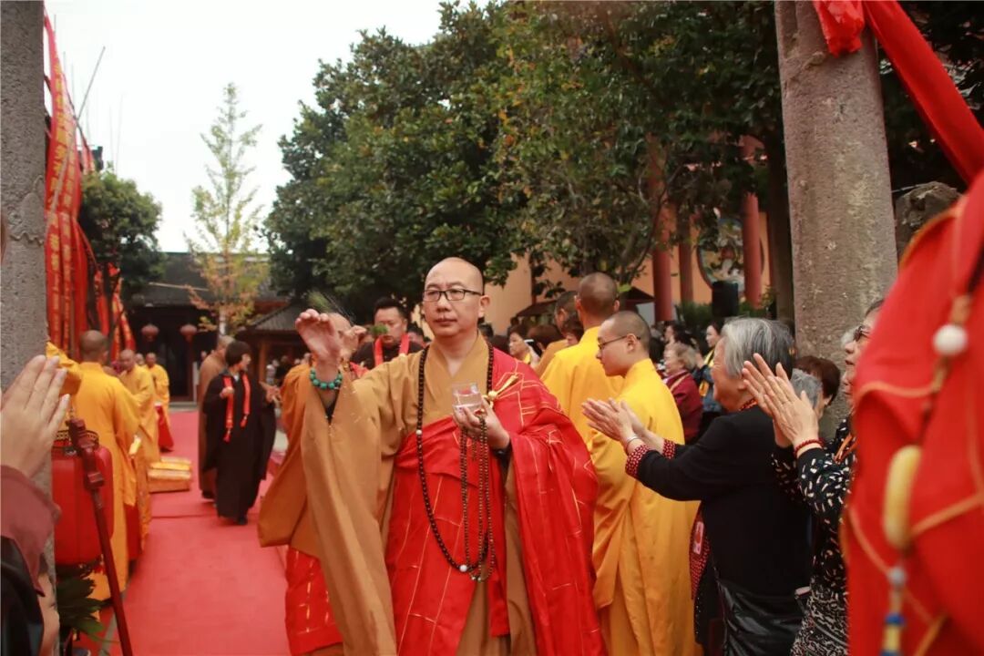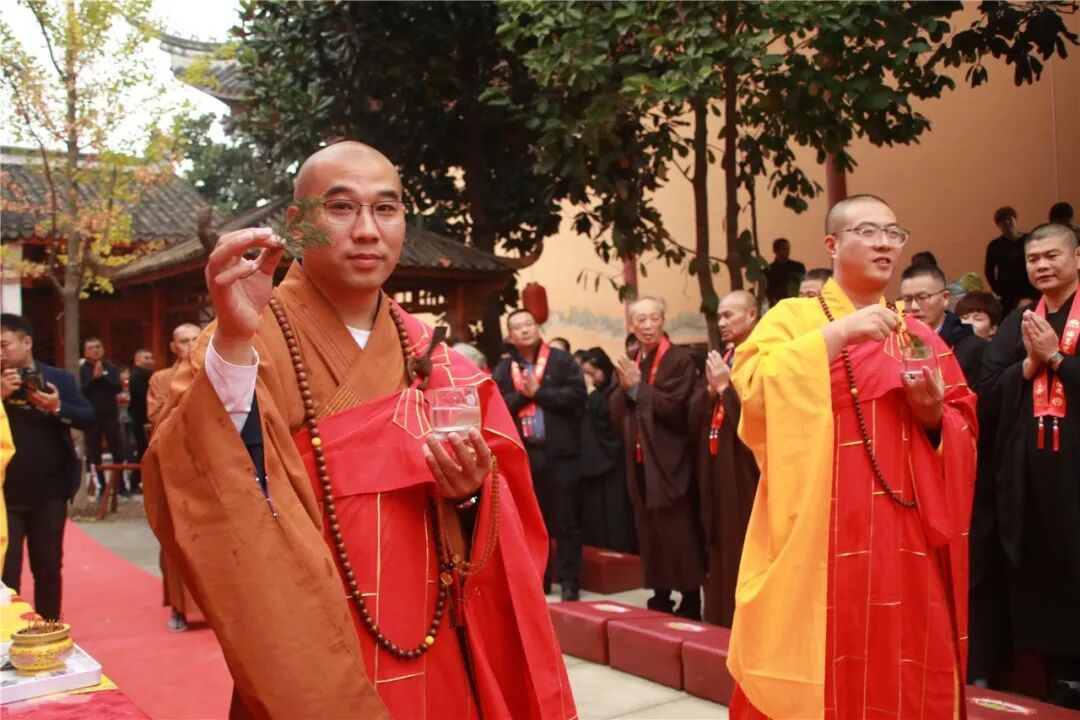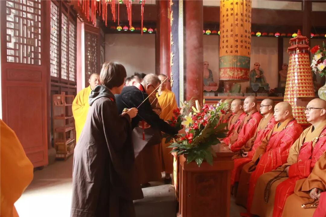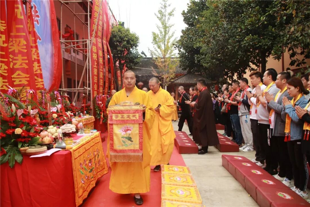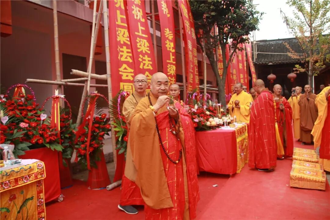 上午10点28分,在阵阵梵呗声中,宗慧大和尚、惟学大和尚、宗然法师、妙悟法师、印可法师、兴宏法师、演法法师、果明法师、惟一法师、中德法师、仁深法师率领两序大众沐手焚香,讽诵经咒,宣说上梁法语,令坛场悉清净。祈愿道场,龙天护佑,慧灯永续。与会大众法喜充满。