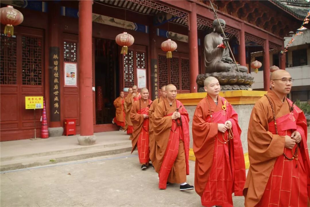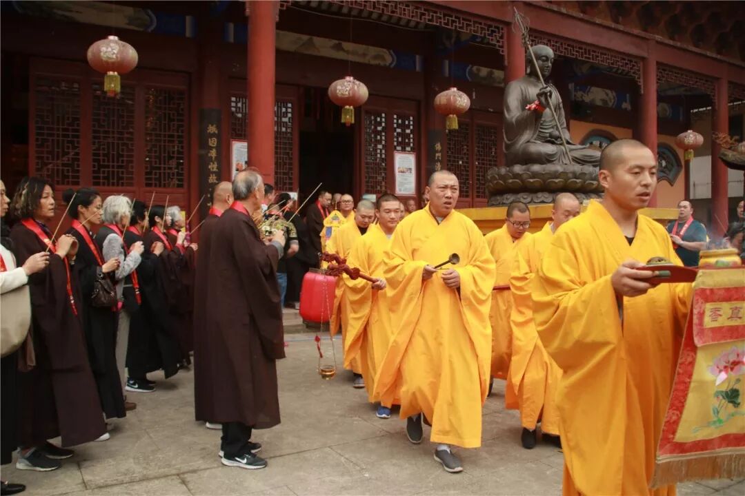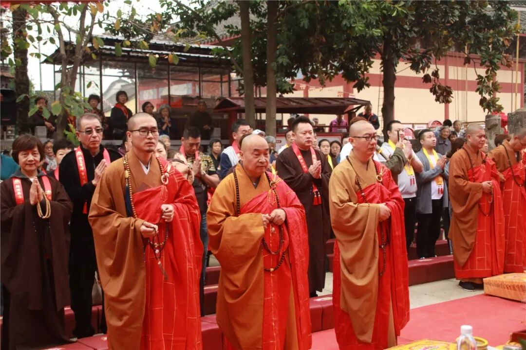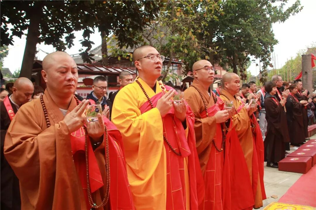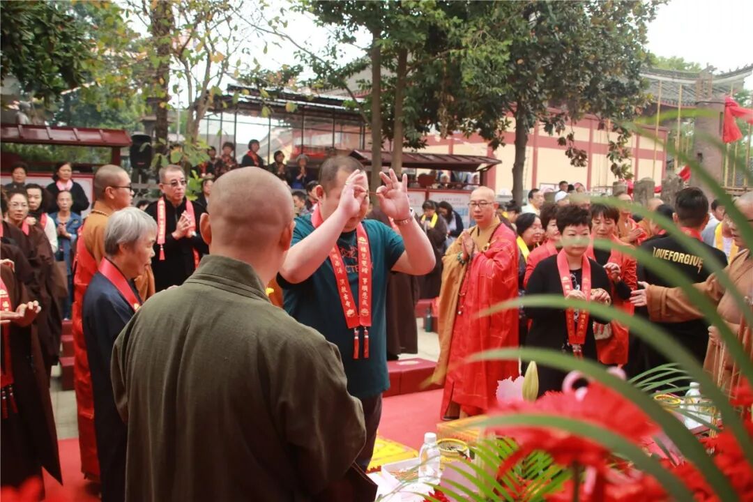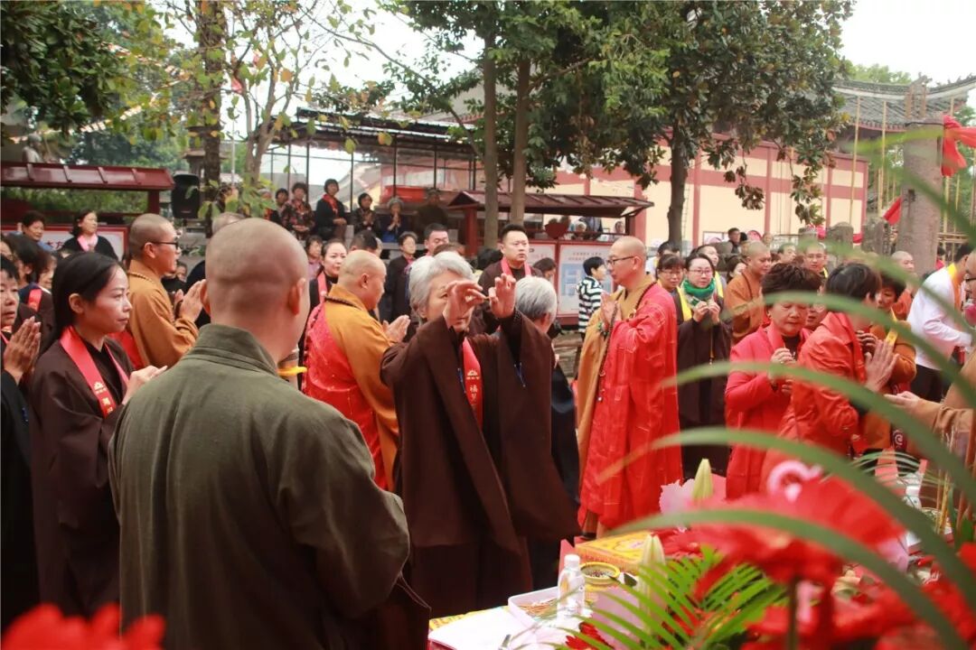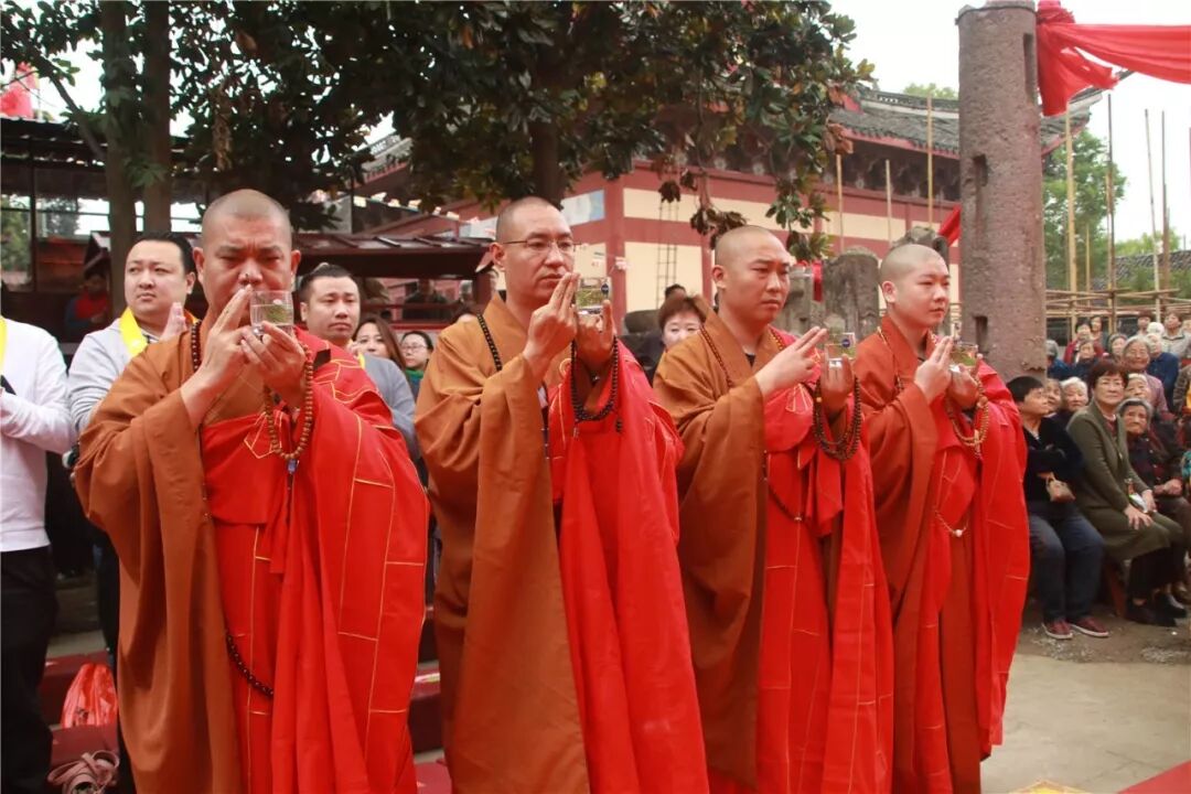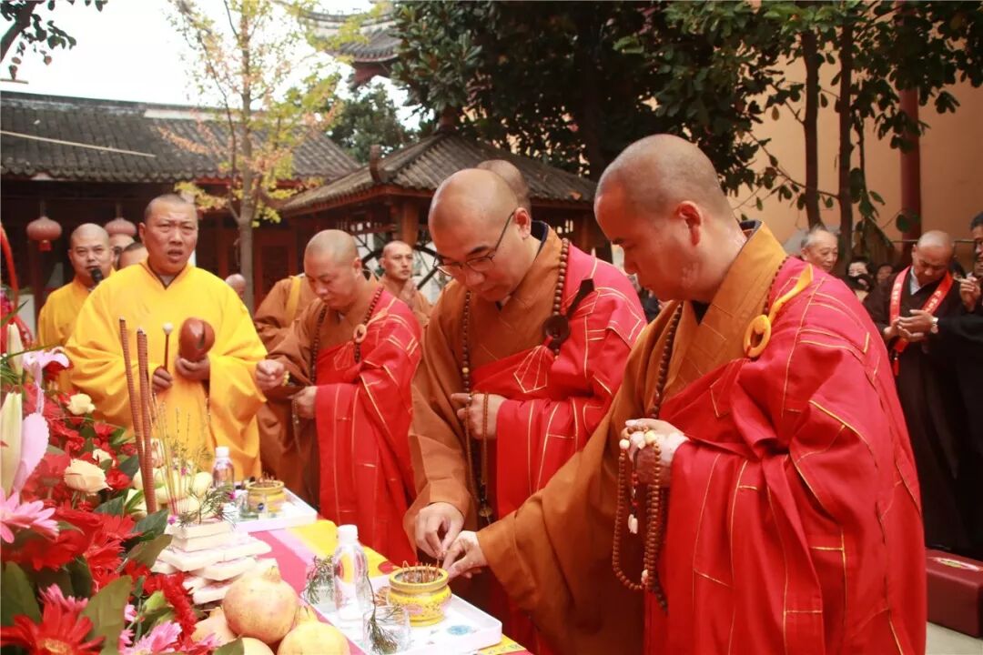 上午10点28分,在阵阵梵呗声中,宗慧大和尚、惟学大和尚、宗然法师、妙悟法师、印可法师、兴宏法师、演法法师、果明法师、惟一法师、中德法师、仁深法师率领两序大众沐手焚香,讽诵经咒,宣说上梁法语,令坛场悉清净。祈愿道场,龙天护佑,慧灯永续。与会大众法喜充满。