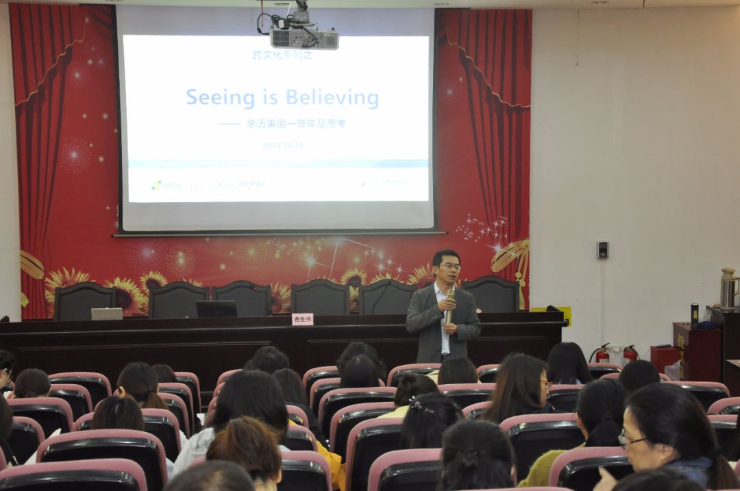 10月25日上午,德清一中韩亚萍老师为参加活动的老师带来了2019年6月高考英语阅卷反馈。韩老师的阅卷反馈系统、详尽,给参会老师提供了很好的教学参考。而后,浙江大学费老师为参会教师们做了“跨文化之Seeing is Believing”的专题讲座,让未走出过国门但同时在教授外语的老师们更深入的了解了西方文化。