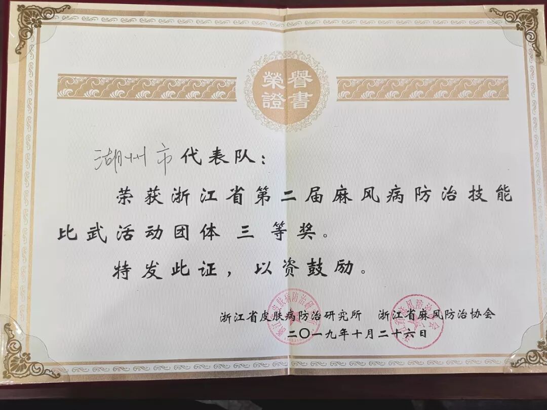 好消息浙江省第二届麻风病防治技能比武,湖州市代表队荣获了团体三等奖的好成绩,同时,市疾控中心朱幸获技能比武个人二等奖,德清县疾控中心冯海燕和安吉县人民医院王涛获得技能比武个人三等奖。