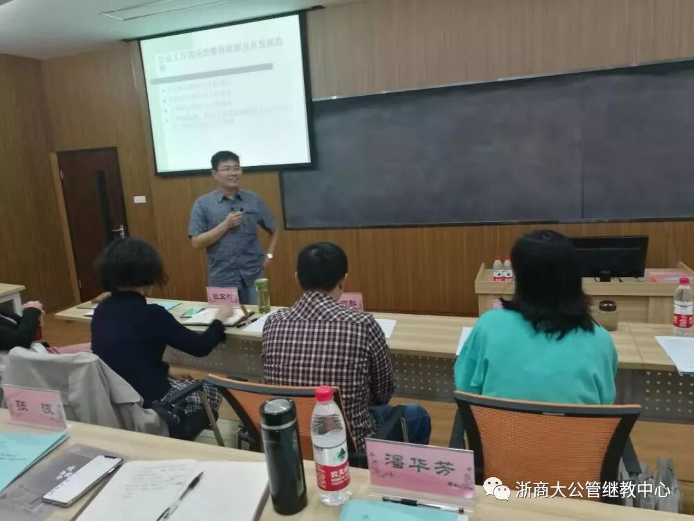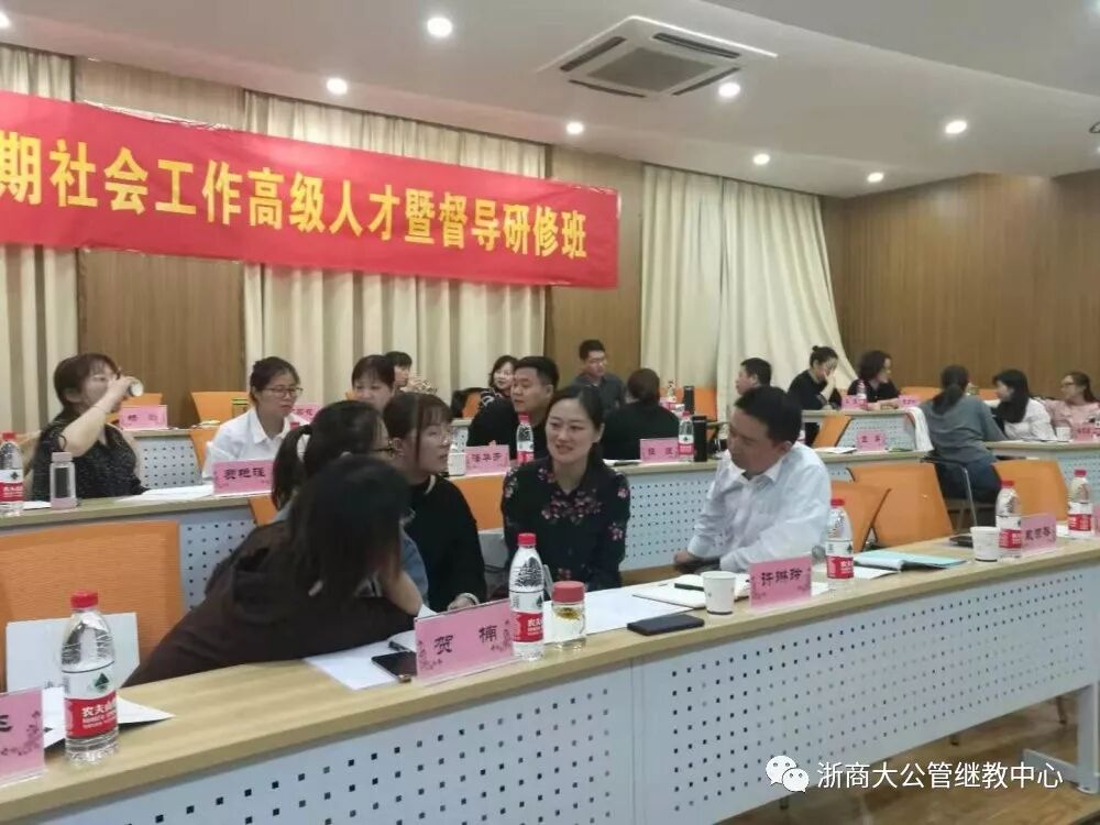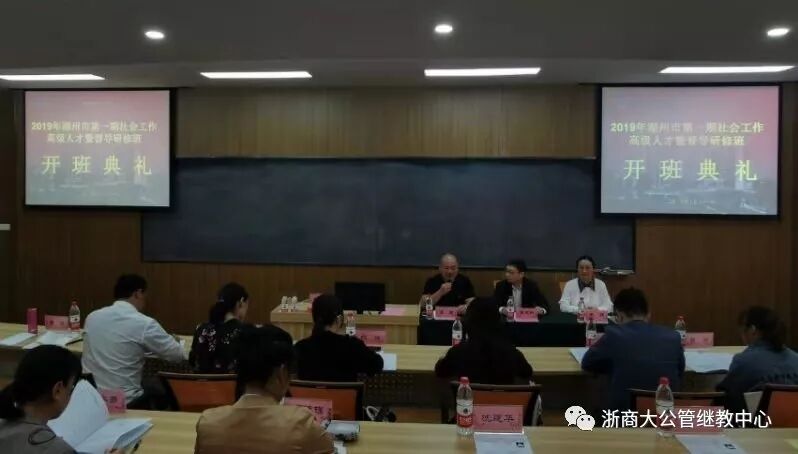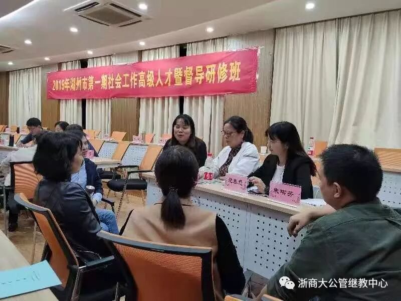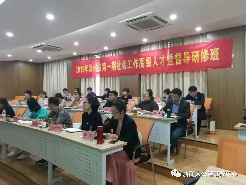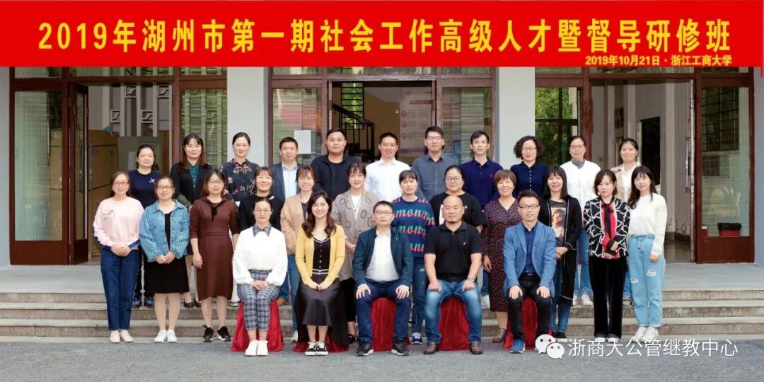 湖州市民政局为鼓励领军人才赴先进地区学习、交流、培训、实习,提升领军人才专业理论水平和实务工作能力,为湖州市专业社会工作人才提供理论与实训培训,发挥专业社工人才在社区建设方面的基础性作用,促进专业社会工作参与基层社会治理,于2019年10月21日至25日,在浙江工商大学公共管理学院继续教育中心如期举办了“2019年湖州市社会工作高级人才暨督导研修班(第一期)”。