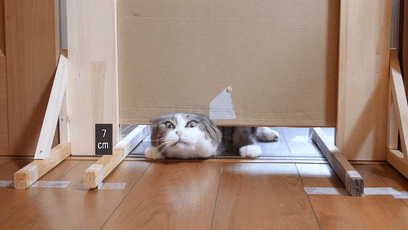 先做了高度实验先设定门高度35厘米正好是猫的身高肥猫轻松走过无压力