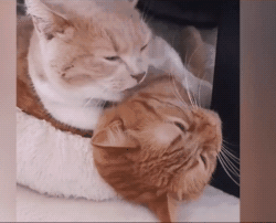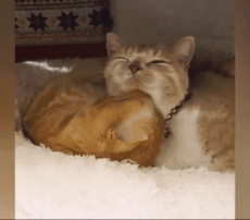 基本上每天24小时都要在一起,更有有趣的是从它们在一起后,两只猫咪都变得很懒,几乎都宅在家里,所以它们现在都变成了“胖子”。