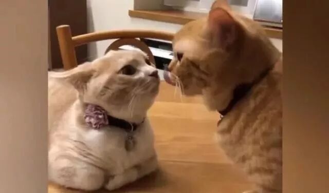 网友家原住的橘猫就是小区里的流浪猫,因家里条件太好,橘猫马上发福,为了让橘猫减肥,不得以领着猫出来溜,谁知竟又遇到另一只橘猫,两猫一见钟情,网友不忍分开,所以直接领回家,就这样两猫过上了没羞没臊的生活