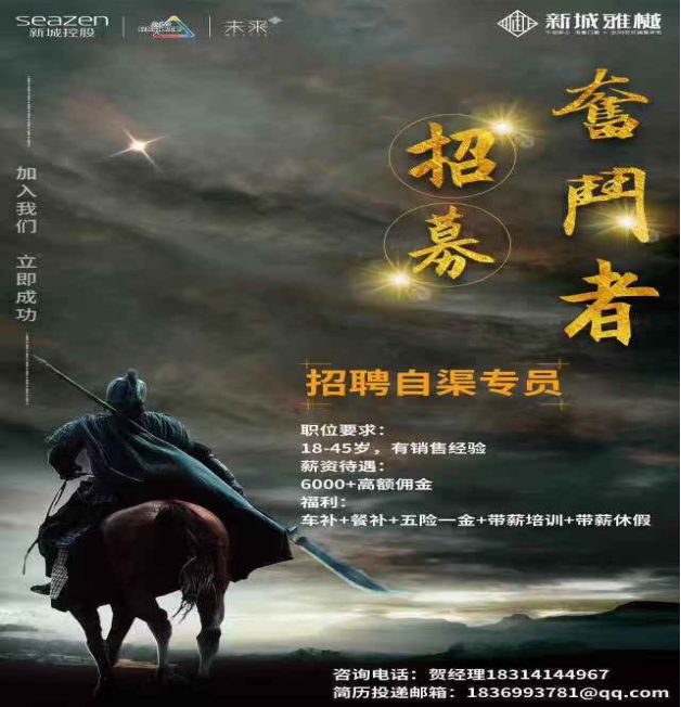 要求:男女不限,25-40岁,有丰富的物业工作经验。薪资:试用期4000元/月,转正以后4500元/月