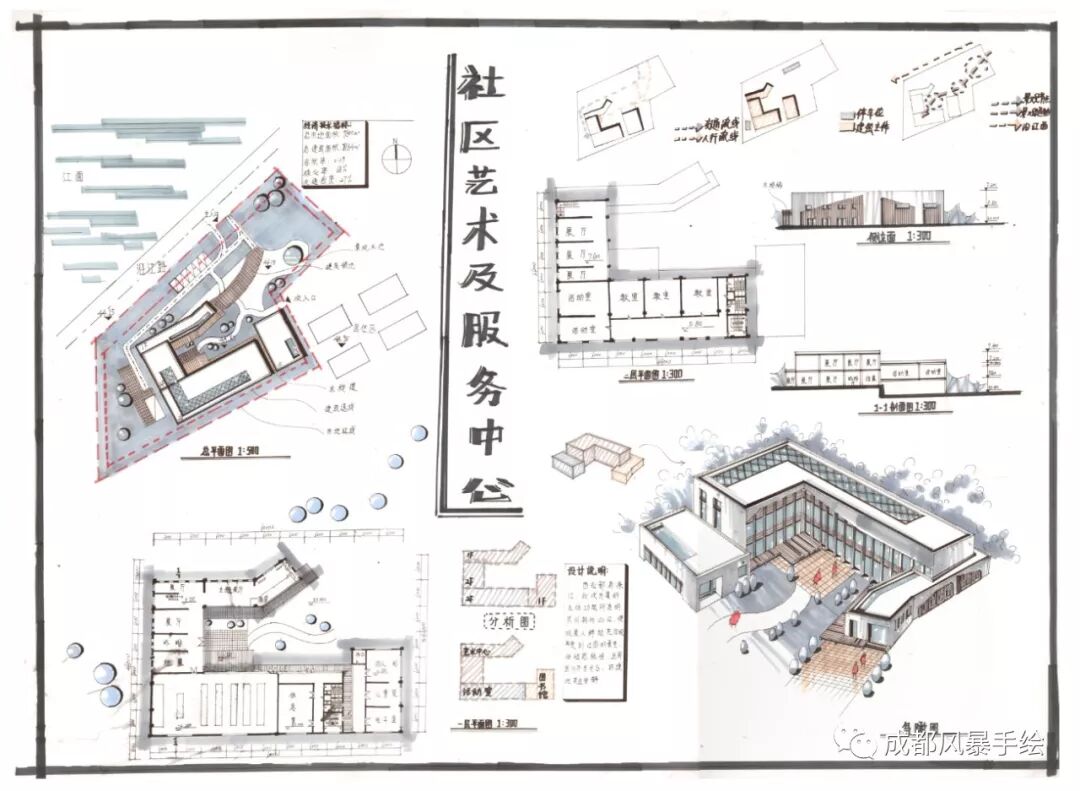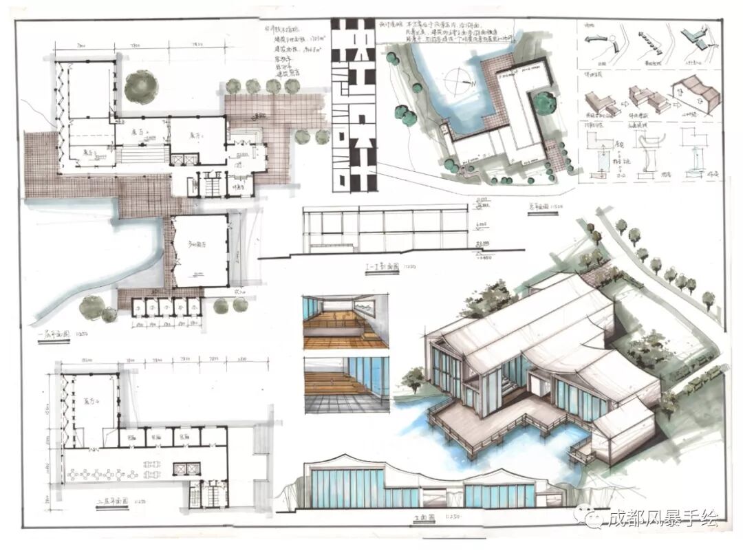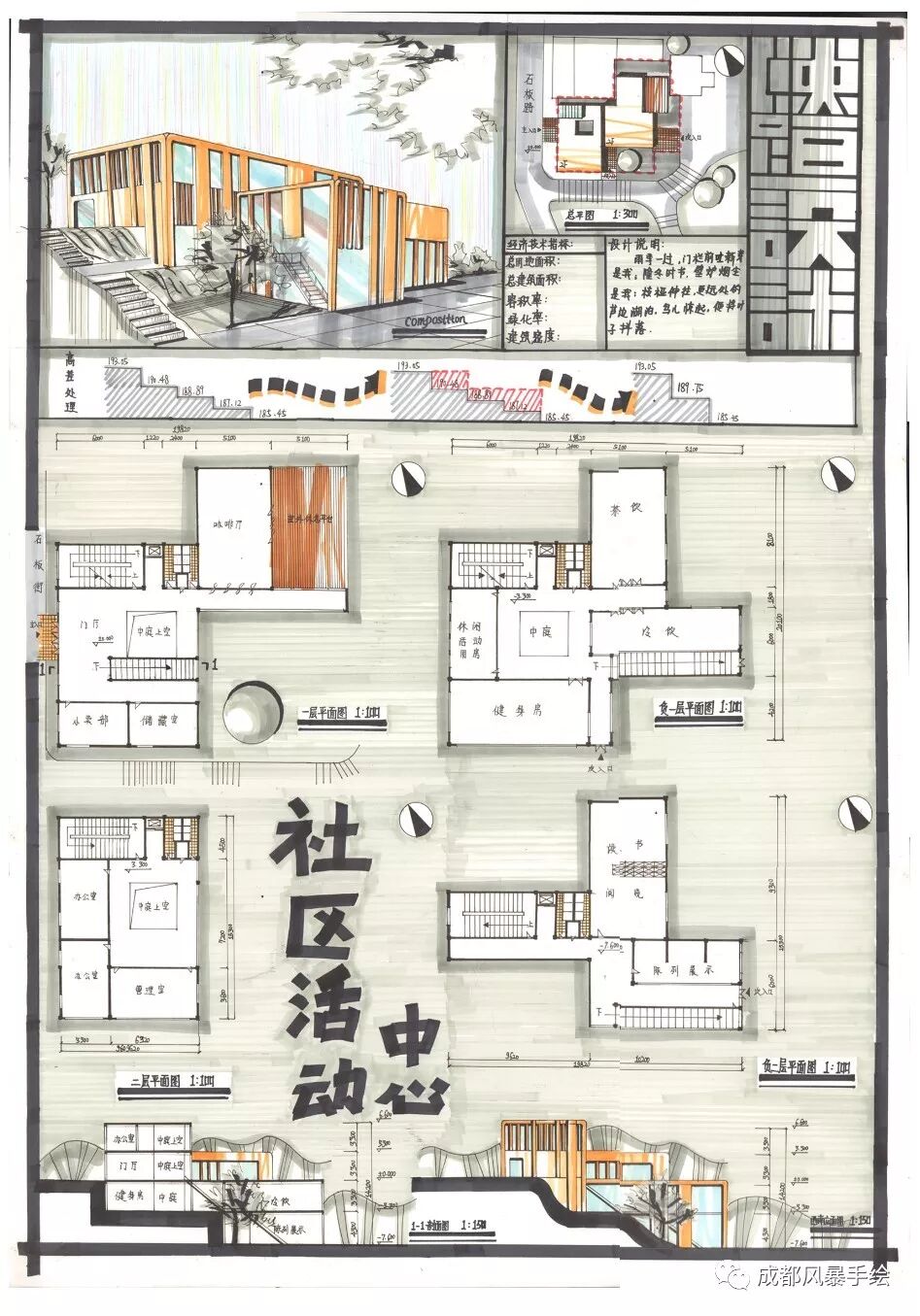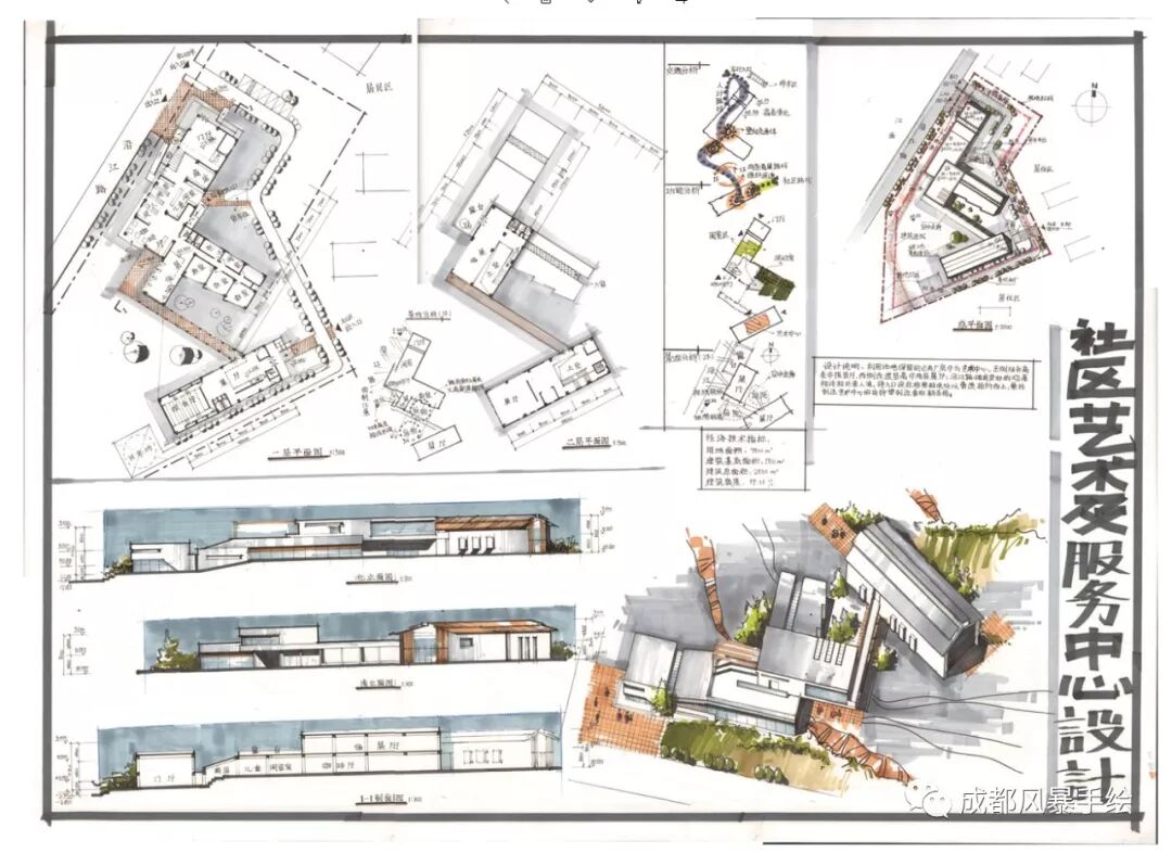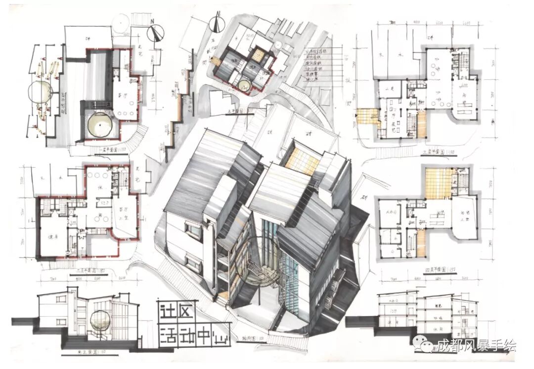 擅长建筑平面处理、建筑细节深化、建筑马克笔表达